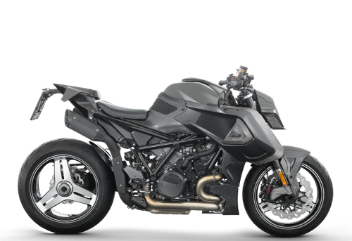 Developed using the KTM 1390 SUPER DUKE R EVO as its technological platform and limited to 100 units worldwide, this bike was created for a single purpose: to set a new benchmark. It is a statement. A never-before-seen incarnation of 1-Second-Wow design boasting an unmistakable Black and Bold aesthetic. It is raw strength and style brought together, merging only the very best that both brands have to offer. read more ..