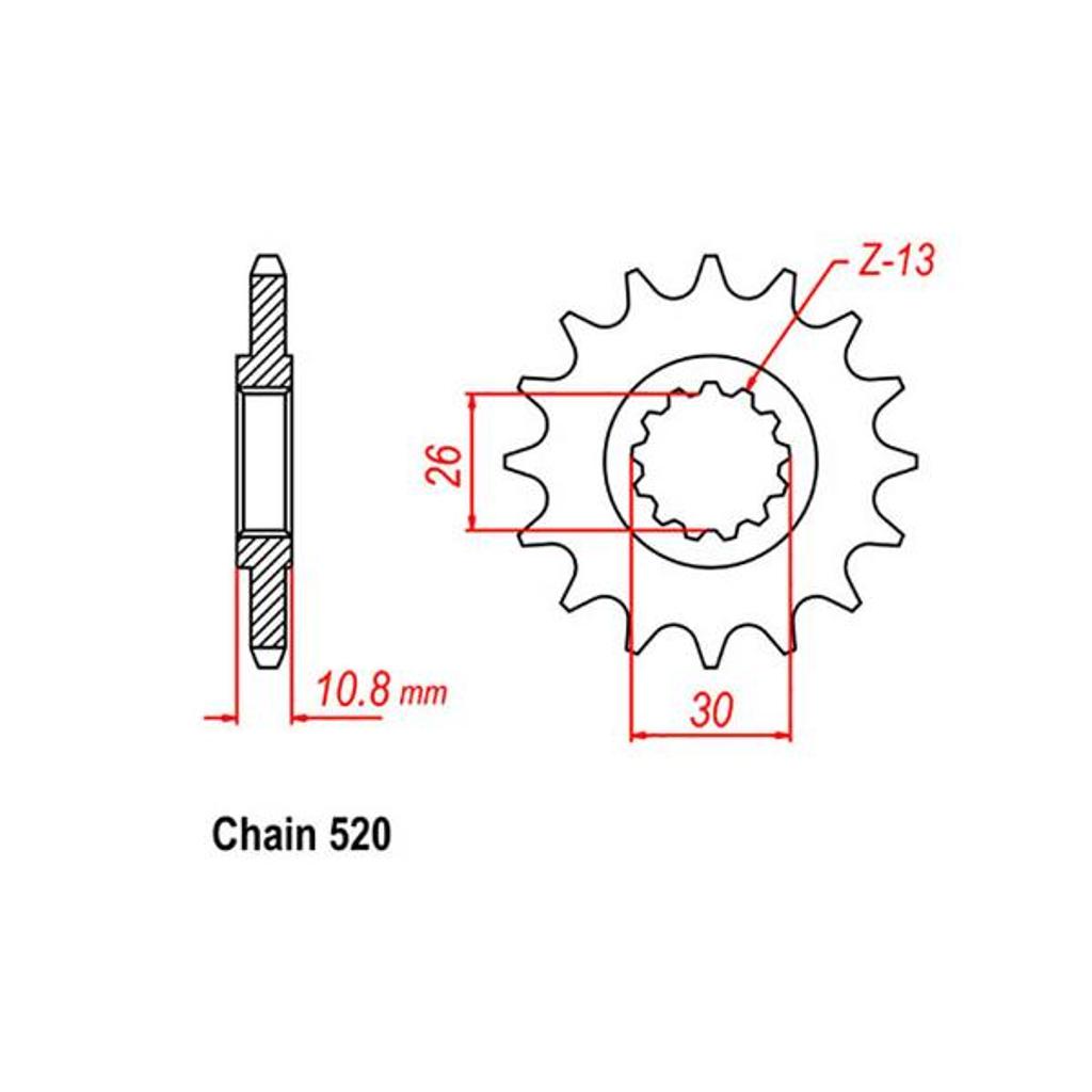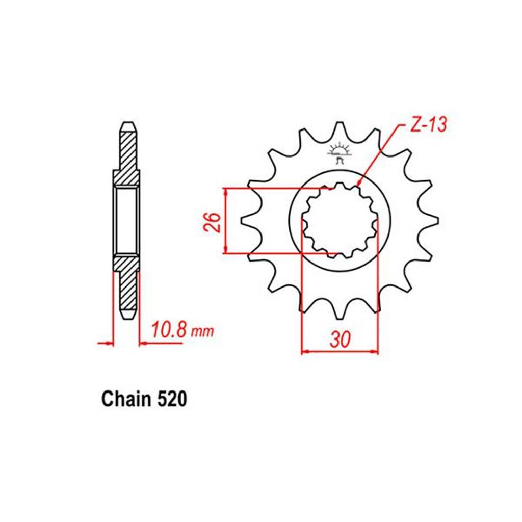 15 Teeth, Front Steel SprocketSuit 520 Pitch Chain. Precision machined for enhanced power delivery and efficiency.