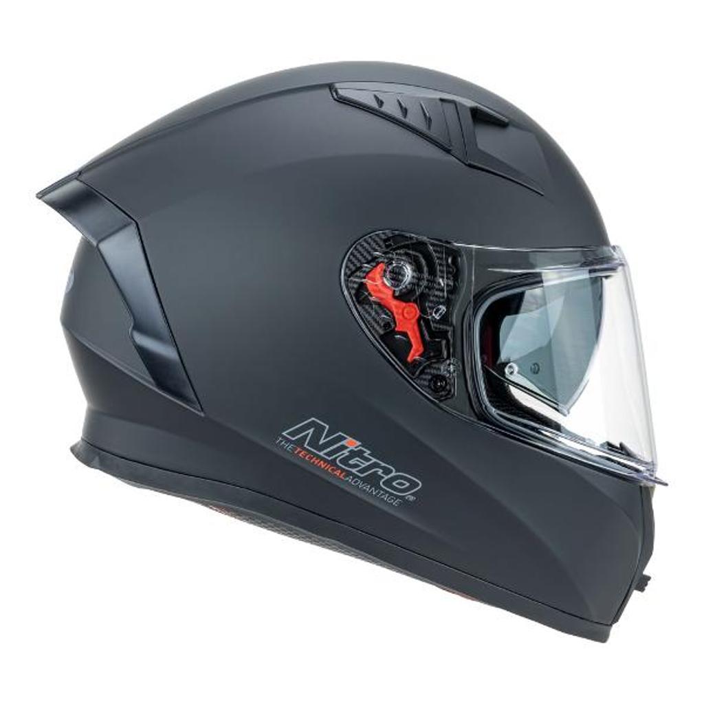 The Nitro N501 is an affordable, adaptable helmet with a surprising array of features, including an internal drop-down sun visor, impressive aerodynamic performance, efficient ventilation and an expansive field of vision. The shell is of thermoplastic construction, and the inner liner is of Dry Comfortable fabric.