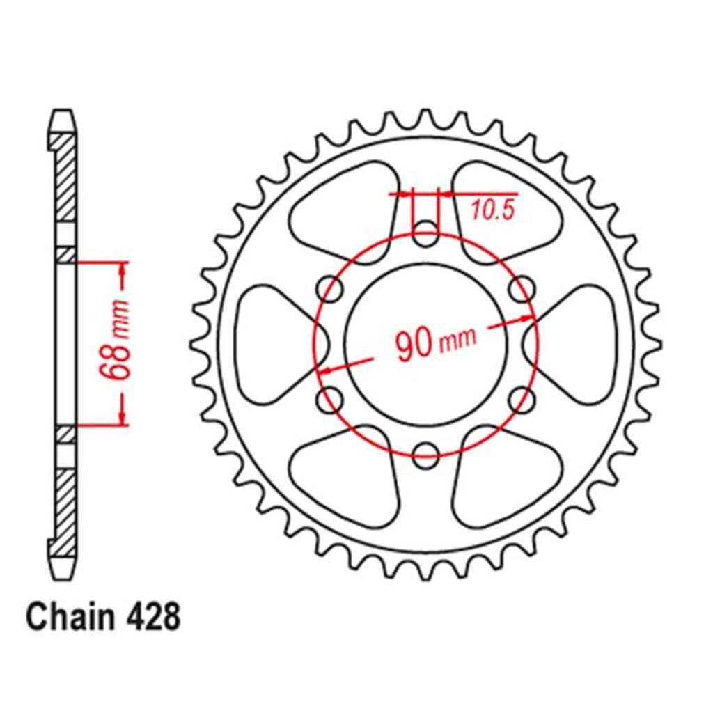 38 Teeth, Rear Steel SprocketSuit 428 Pitch Chain. Precision machined for enhanced power delivery and efficiency.