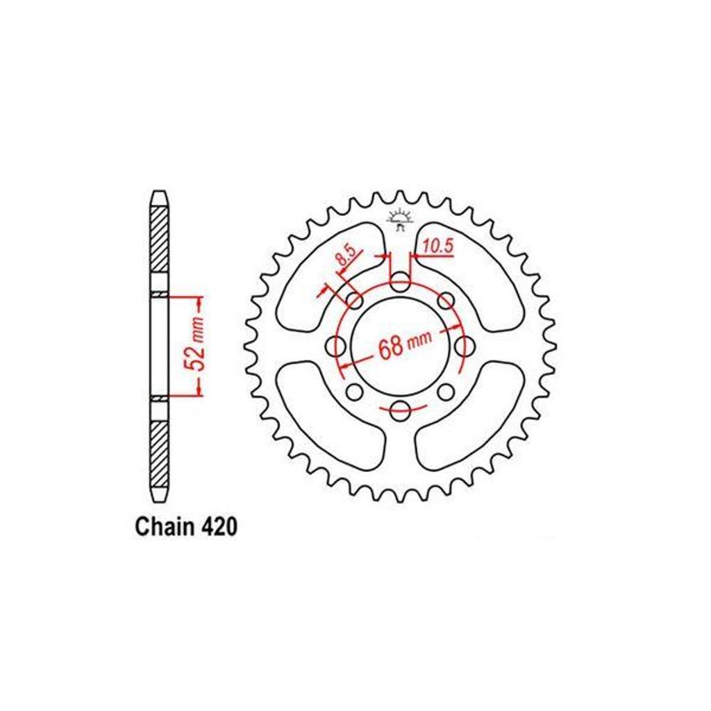 33 Teeth, Rear Steel SprocketSuit 420 Pitch Chain. Precision machined for enhanced power delivery and efficiency.