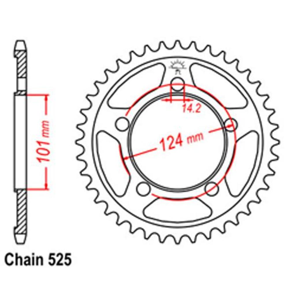 41 Teeth, Rear Steel SprocketSuit 525 Pitch Chain.Precision machined for enhanced power delivery and efficiency. Our leading brand of sprockets for both Motorcycles and ATVs use only the finest raw materials with cutting edge technology in their production. Our huge range gives you the ultimate in OEM replacement sprockets at unbeatable value.