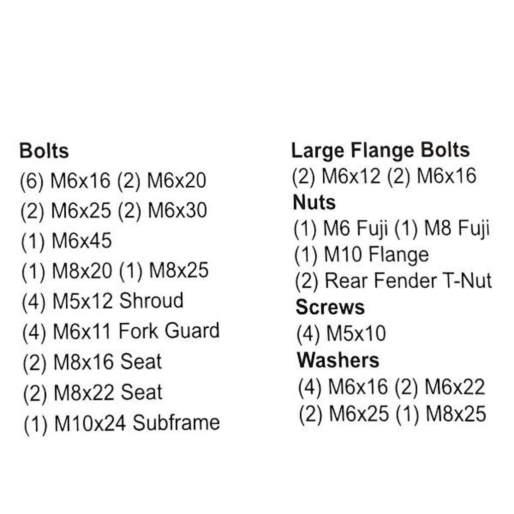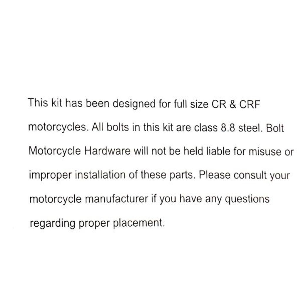 States MX Track Pack Bolt Kits come in an easy to store compartment box. Each box is brand specific and contains 51 pieces. These kits are a smaller version of the Pro Pack. Carry one of these in your toolbox and you will have the basics for and bolts or nut you may need for your bike in a hurry at the track.