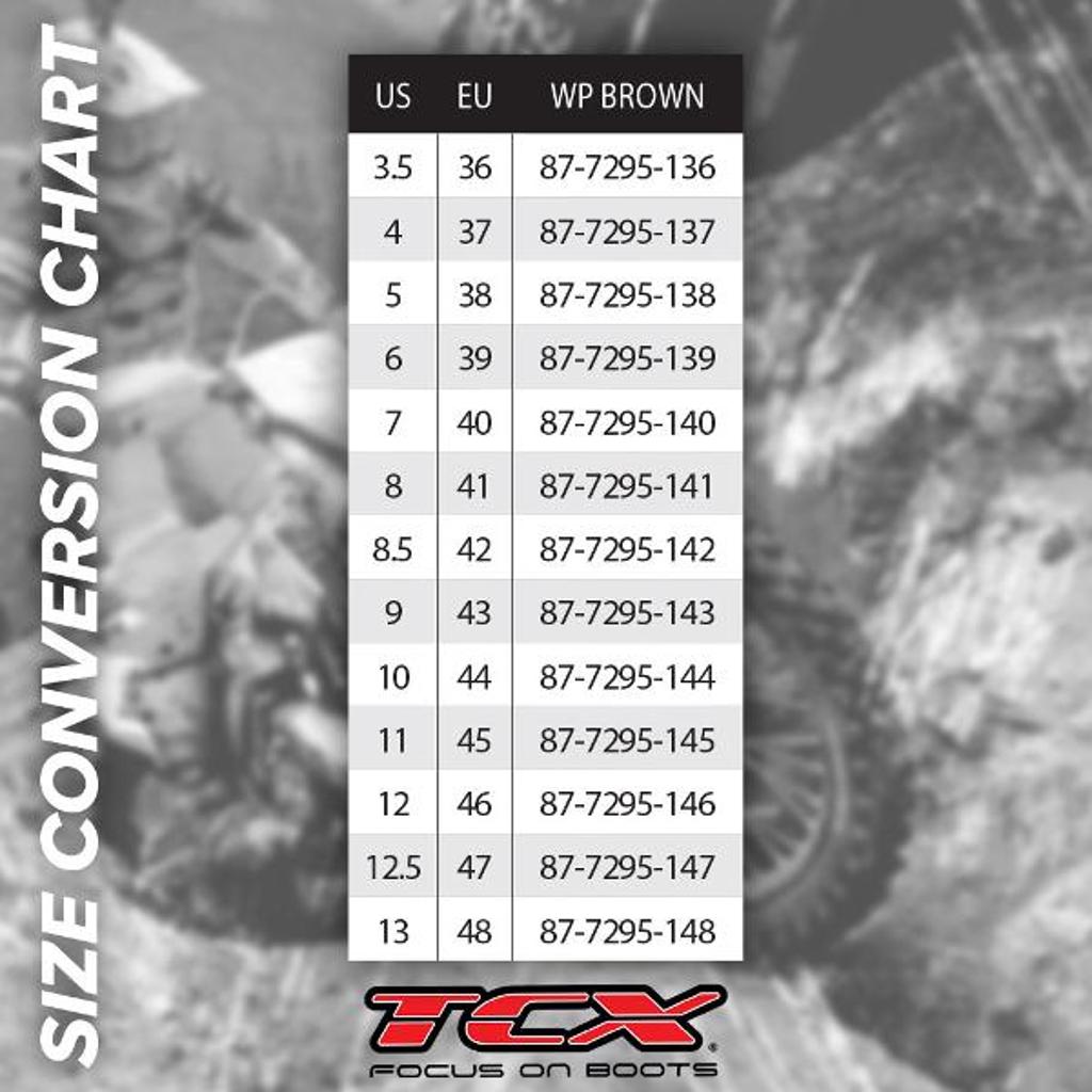 DOES ALLTCX FOOTWEAR OFFER THE SAME FIT? Generally, yes, even though the conversion of sizes is indicative, since everyTCX model is developed according to specific parameters and usage requirements, using fitting lasts and materials designed specifically to provide outstanding comfort. There could however be some differences in fit between two different models of the same size.