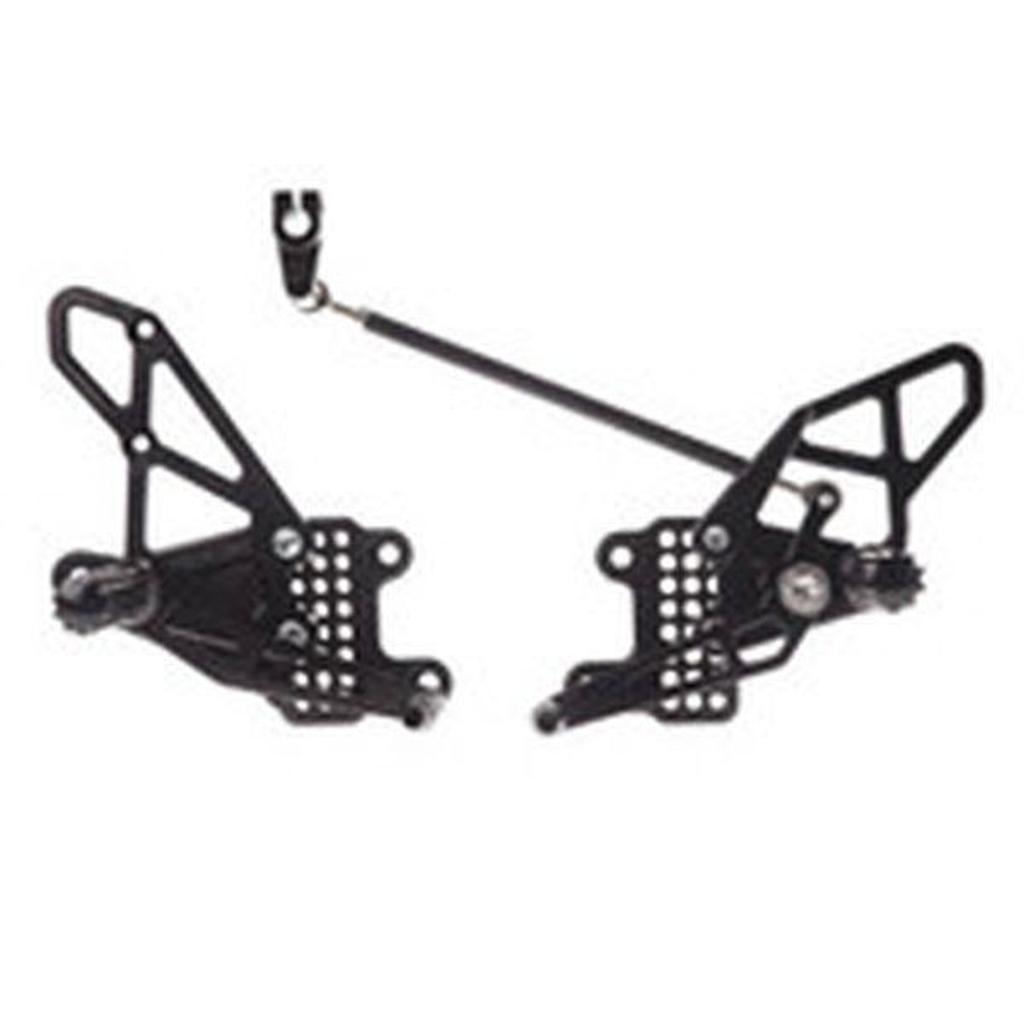 AVAILABLE BY SPECIAL INDENT ORDER ONLY. FITS : DUCATI 848 08-13 / 1098 07-11 / 1198 09-11Brake-Pivot design keeps brake pedal with footpeg for more consistent feel between adjustment positions. Brake pedal mounted on heel guard to help prevent engine block damage in the event of a crash. Shift & Brake pedals mount independent of footpegs to prevent binding in the event of a crash. Adjustment Range - Fwd:5mm, Back:15mm & Down:5mm, Up:25mm ? 10mm increments, 12 positions. CNC Machined from 6061 Aluminum for strength, low weight & durability. Dual Ball Bearing Shift and Brake Pedals provide smooth and consistent action. Rounded edges prevent race boots from getting snagged on heel guards while riding. Race grip footpegs increase rider confidence and chassis feedback. Individual replacement parts available from Vortex, your local dealer, and most trackside vendors.