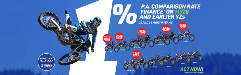YZ Finance Yamaha is pleased to announce 1% finance on selected 2025 and earlier YZ models. View Promotion
